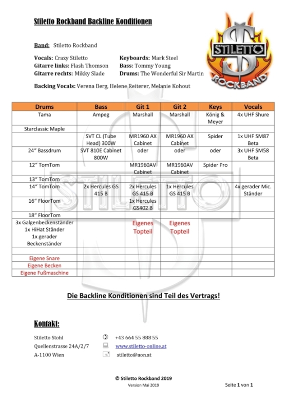 Bei Rückfragen zu unseren technischen Anforderungensetzen Sie sich bitte mit uns per Kontaktformular, per E-Mail: stilettoat@aon.at oder unter 0664 55 888 55 in Verbindung.